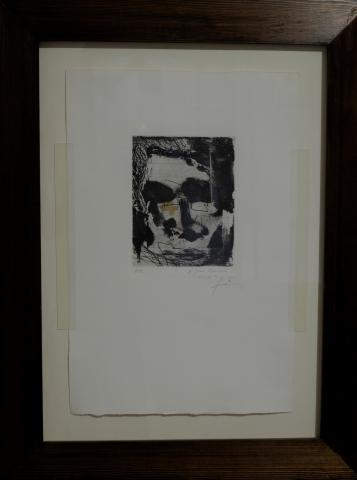 ANTONI TÀPIES Autoretrat 1991 Gravat al sucre amb collage Paper 56.70 38.50 Catalogat: Galfetti 1305 ANTONI TÀPIES:SIGNES I ESTRUCTURES